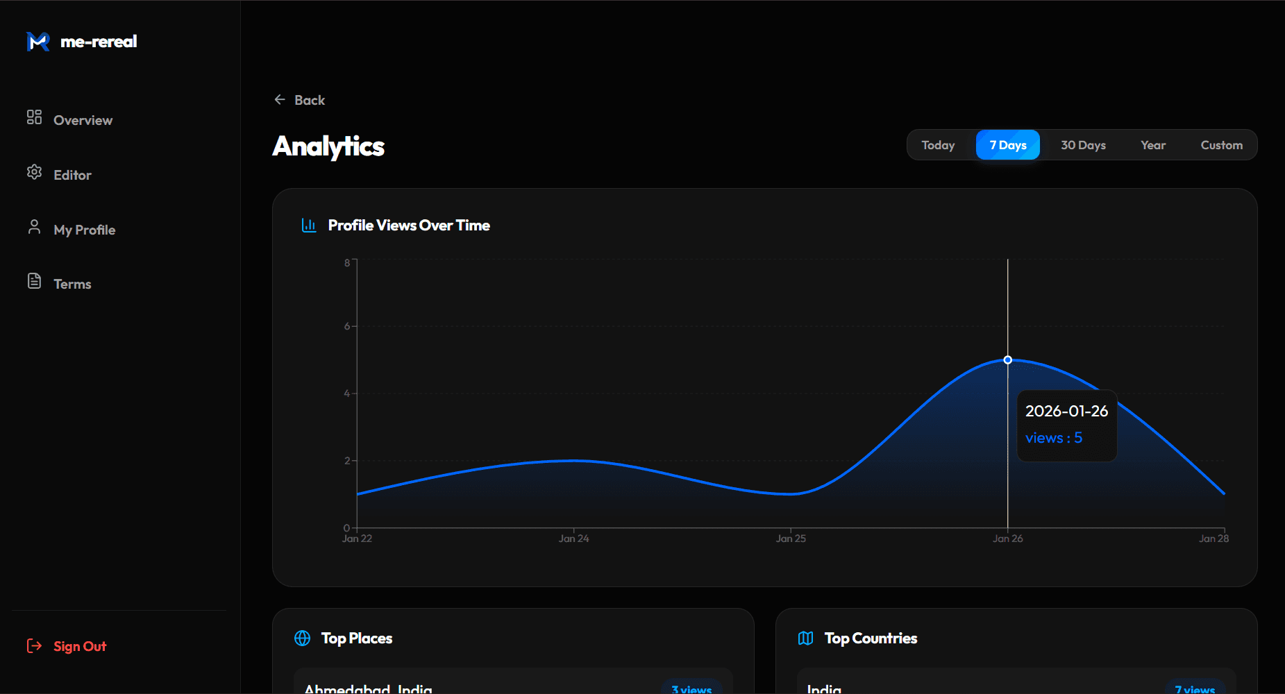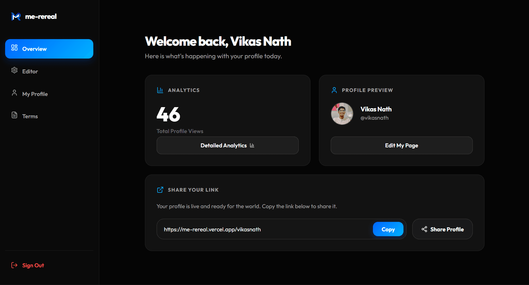 A story-driven personal website platform that lets users create a clean, public identity page to showcase links, tools, and content in a narrative flow. Designed to feel alive and intentional, moving beyond static “link-in-bio” pages.
